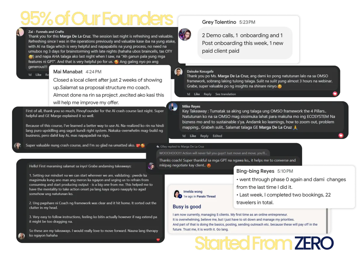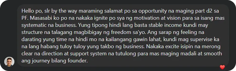 And now, the same process that built my freedom and our students' first businesses is the same system we teach inside Pinoy Digital Founder. Batch 1 and 2 founders are now building real businesses, closing clients, overcoming fear, and proudly stepping into their Founder Era.